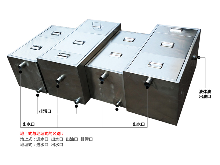 隨著餐飲業(yè)的發(fā)展,含油污水的排放量也逐漸增加,嚴(yán)重污染了排污管道和城市河網(wǎng),形成了很多臭水河道。隔油池能將絕大部分的油污和殘渣去除,大大降低污水處理廠的處理負(fù)荷,降低了城市污水管網(wǎng)的維護成本。不銹鋼隔油池是本公司專為飯店、餐館、食堂開發(fā)生產(chǎn)的通用型隔油凈化池,利用含油污水在重力作用下,借助油水比重差,采用自然上浮分離去除廢水中的可浮油與部分細(xì)分散油。隔油設(shè)備會截獲大部分的沉積物,防止堵塞管道,確保管道網(wǎng)絡(luò)的暢通。隔油設(shè)備適用于賓館酒店、餐館、食堂等地的廚房排油排污場所。